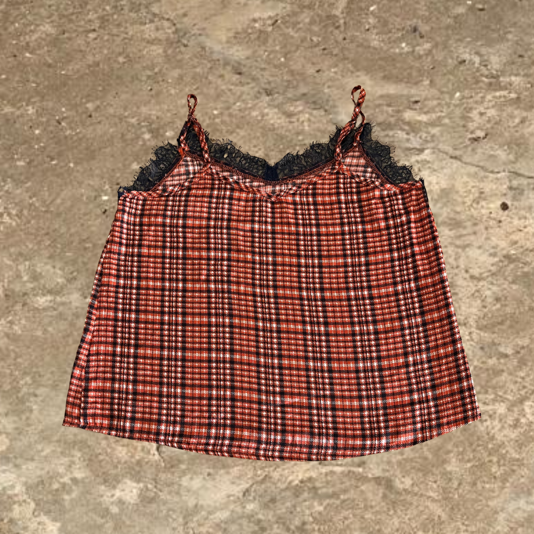 Cotton On Laced V Neck Orange Striped Sleeveless Top