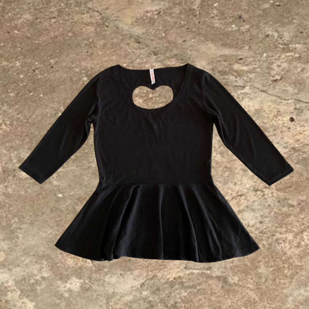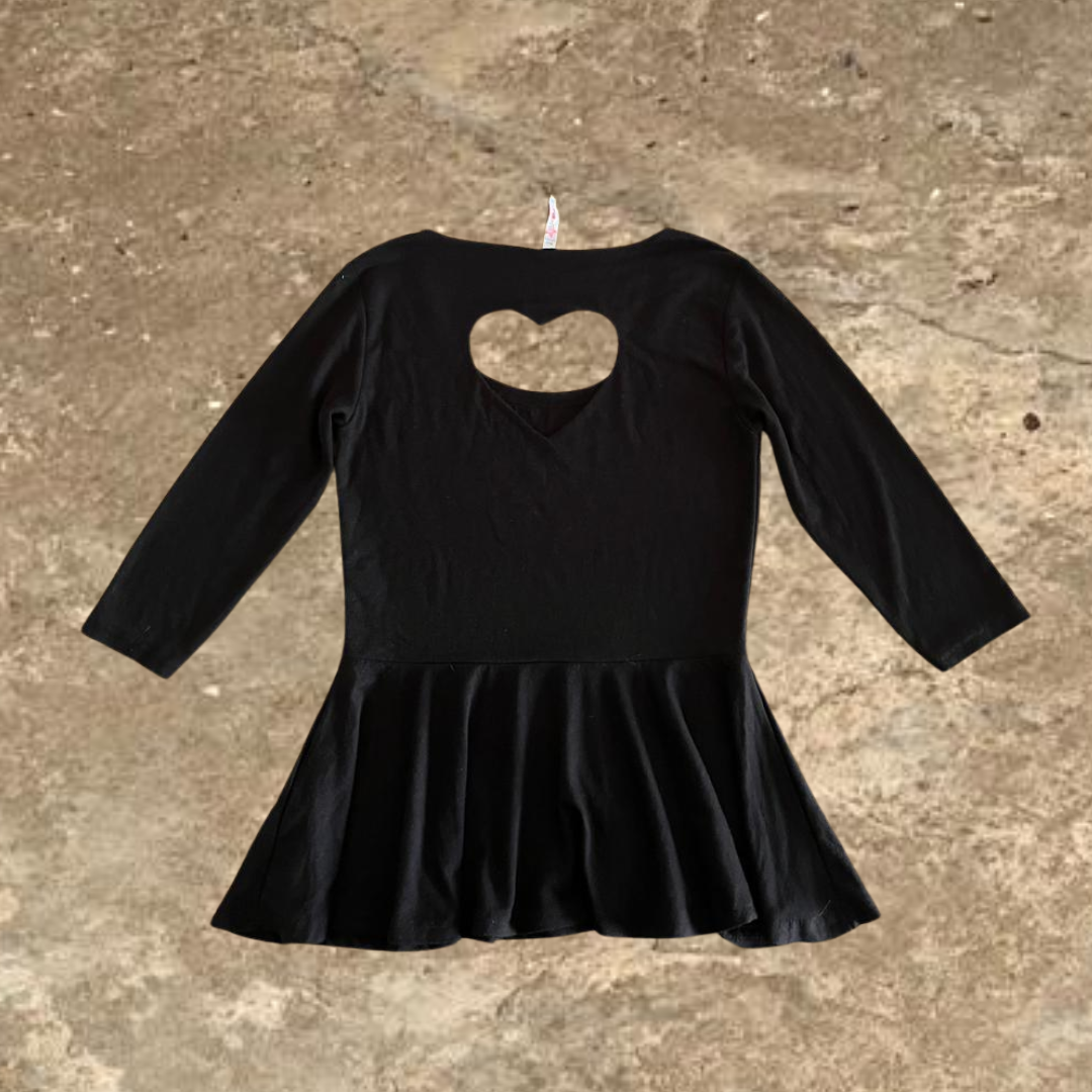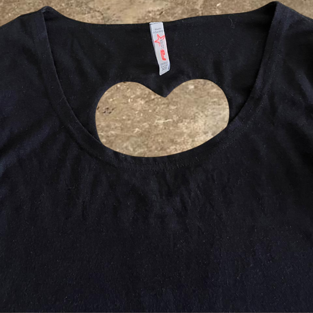 FB Sister Heart Shaped Back Quarter Sleeves Black Shirt