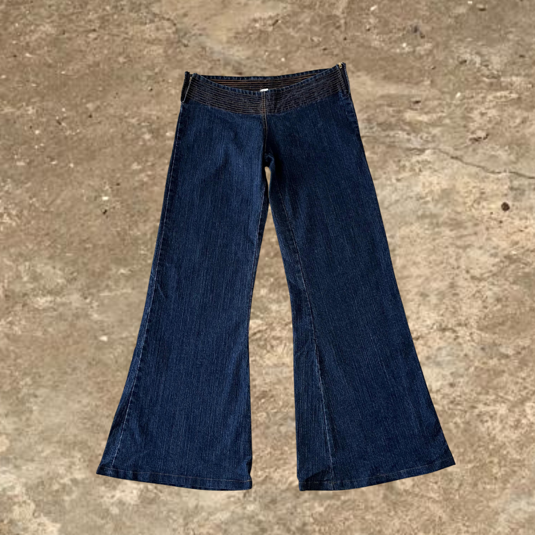 Low Waisted Dark Blue Wide Leg Jeans